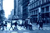 Crowds of people in motion across the busy intersection of 23rd Street and 5th Avenue in Midtown Manhattan, New York City