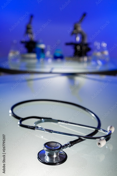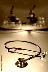 Stethoscope and Microscopes in a Scientific Research Laboratory