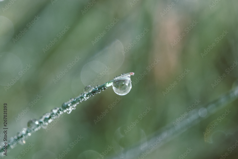 Water drops on the green grass