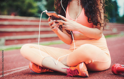Resting after training. Young woman doing fitness outdoors, close up photo. Sport, fitness, recreation concept