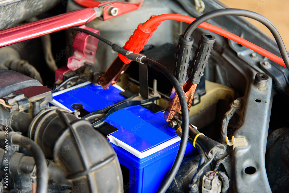 jumping the car battery of old car / charging car battery