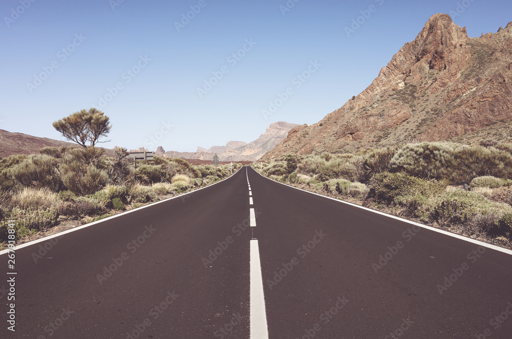 Vintage toned scenic road in Teide National Park, Tenerife, Spain