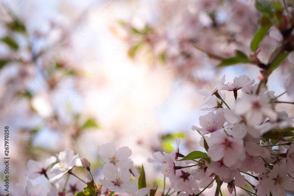 Closeup beautiful cherry blossom or Sakura flower on nature background.-Image.