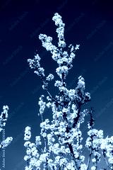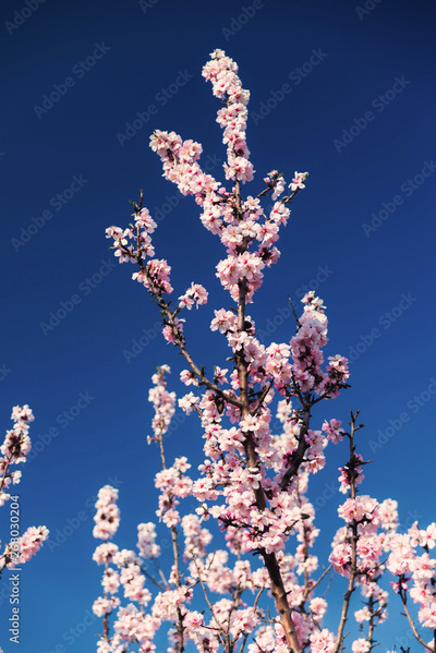 Almond blossoms against a blue sky in spring