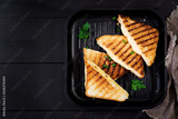 American hot cheese sandwich. Homemade grilled cheese sandwich for breakfast. Top view