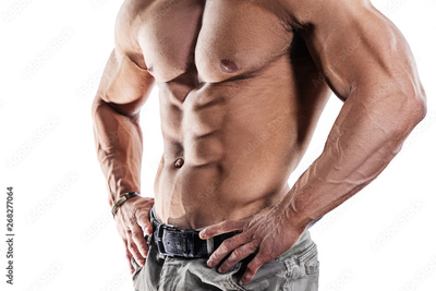 Muscular and sexy torso of young athletic man isolated on white background