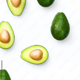 Avocado food concept on white background. From top view. Square Template. Flat lay