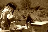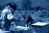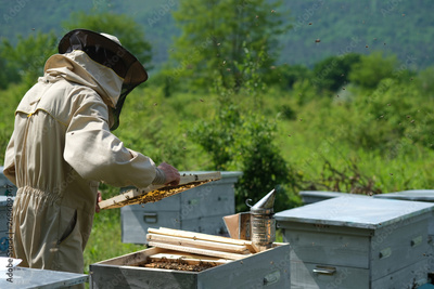 Beekeeper working collect honey. Apiary. Beekeeping concept.
