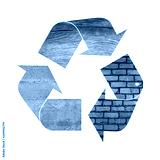 Recycling symbol of concrete, wood and bricks