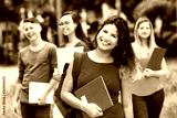 Junge Studentin aus Spanien mit anderen Studenten