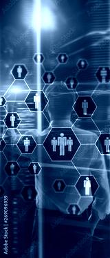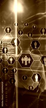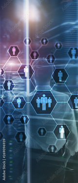 Vertical Panorama Banner. HR, Human Resources, Recruitment, Organisation structure and social network concept.