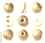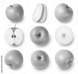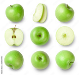 set of green apples isolated on white background. Top view.
