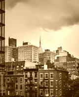 Retro toned picture of Manhattan cityscape, New York City, USA.