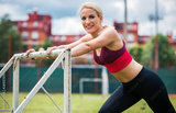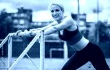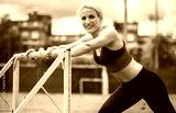 Young woman stretching body after training. Fitness, sport, lifestyle concept