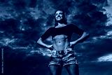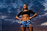 Beautiful Athletic Woman Posing Outside against dramatic sky