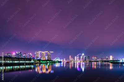 SINGAPORE-MAY 18, 2019 : Cityscape Singapore modern and financial city in Asia. Marina bay landmark of Singapore. Night landscape of business building and hotel. Panorama view of Marina bay at dusk.