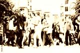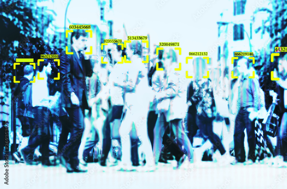 face recognition technology concept illustration of big data and security in city with crowd