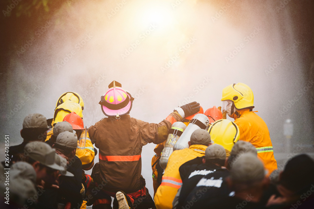 Firefighter Trainer teamwork of Firefighters training, fireman