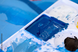Close up of different color oil paint, Patterns or backgrounds of various colors, colors on the fabric.