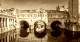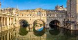 Aerial view of Pulteney bridge in Bath, England