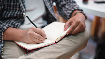 Man taking notes on a notebook