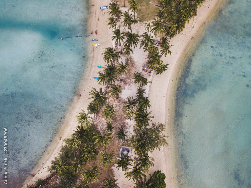 beautiful aerial view of white sand beach on tropical island with palm trees, Ko Ngam, Koh Chang in Thailand