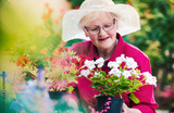 Senior woman working in her garden with a plants. Hobbies and leisure