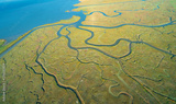 Estuary at Bair Island Marine Park in Redwood City, CA, aerial view