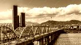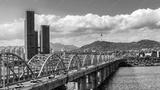 .Skyline of South Korea at Dongjak Bridge Han river in Seoul , South Korea