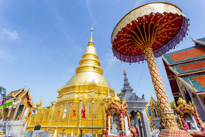 Colorful Lamp Festival and Lantern in Loi Krathong at Wat Phra That Hariphunchai, Lamphun Province, Thailand