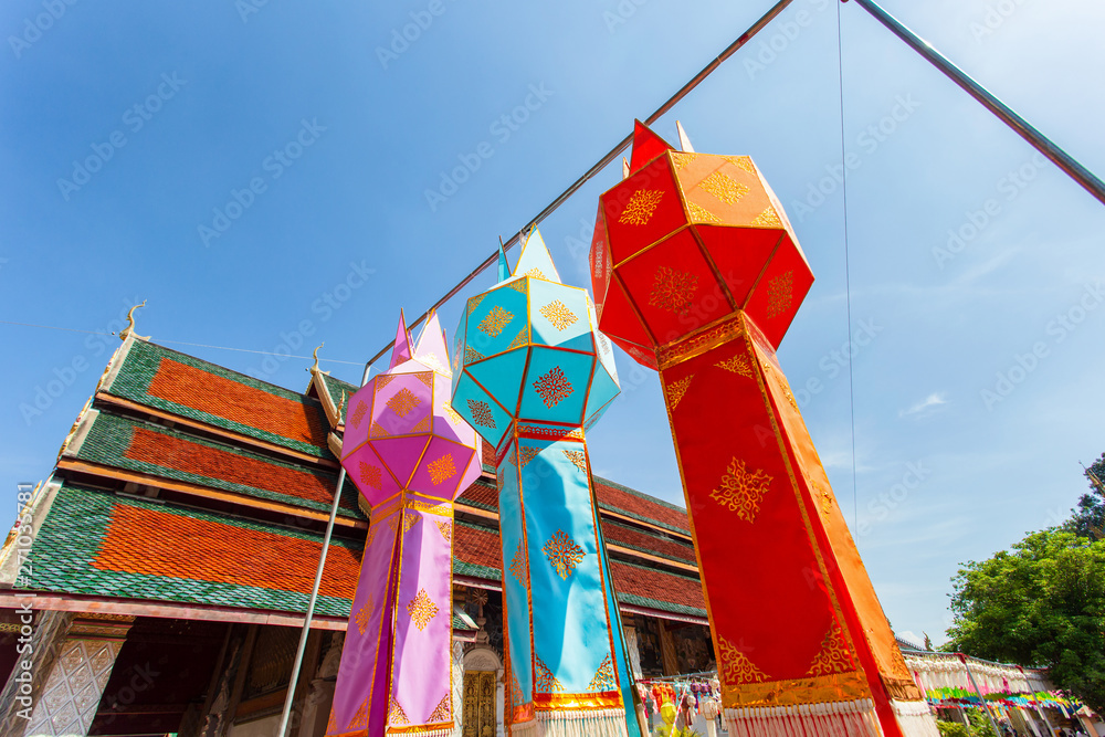Colorful Lamp Festival and Lantern in Loi Krathong at Wat Phra That Hariphunchai, Lamphun Province, Thailand