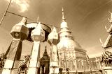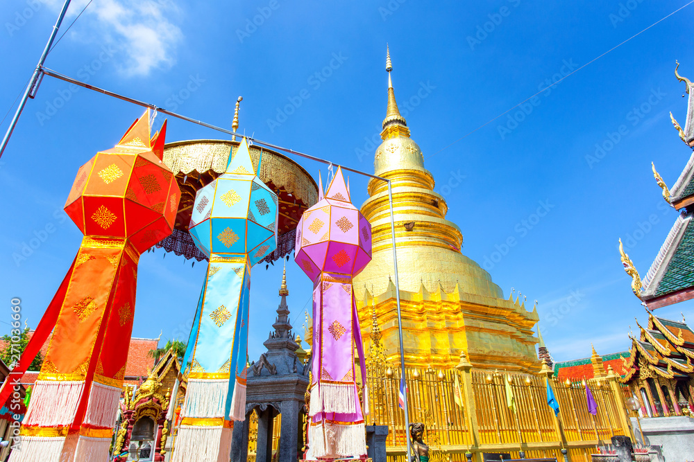 Colorful Lamp Festival and Lantern in Loi Krathong at Wat Phra That Hariphunchai, Lamphun Province, Thailand