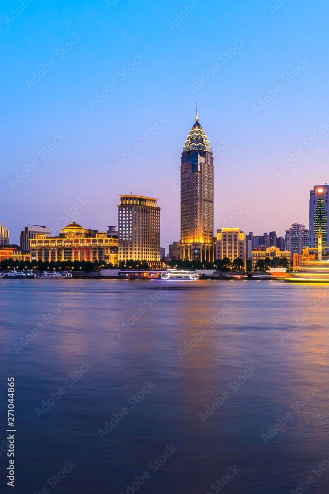Beautiful city skyline sunset scene at the Bund,Shanghai