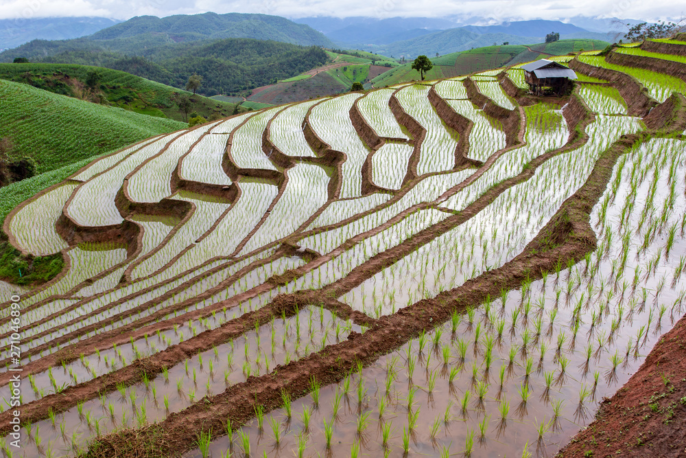 Green Terraced Rice Field in Pa Pong Pieng , Mae Chaem, Chiang Mai, Thailand