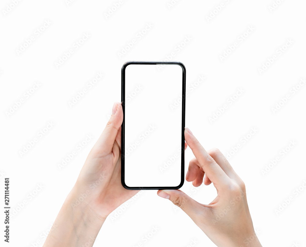 Hand holding smartphone blank screen on isolated. Take your screen to put on advertising.