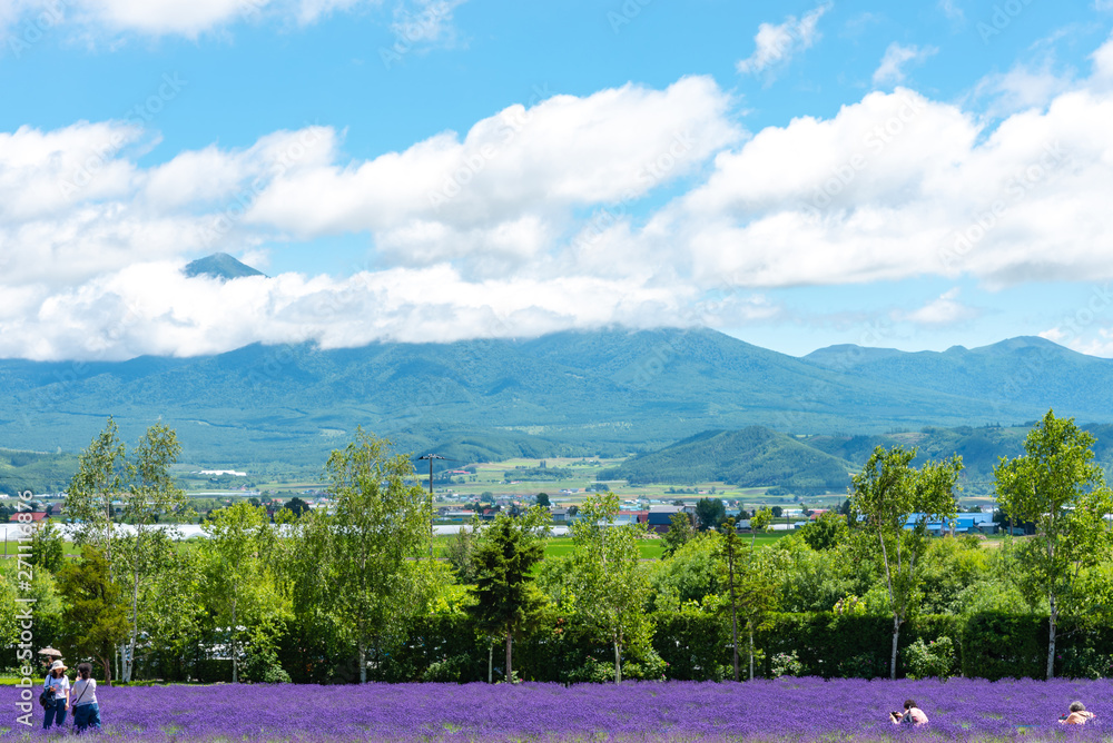 Vest violet Lavender flowers field at summer sunny day with natural background at Farm Tomita, Furano, Hokkaido, Japan