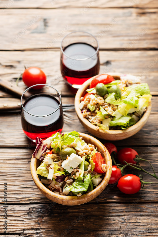 Healthy vegetarian salad with pearl barley