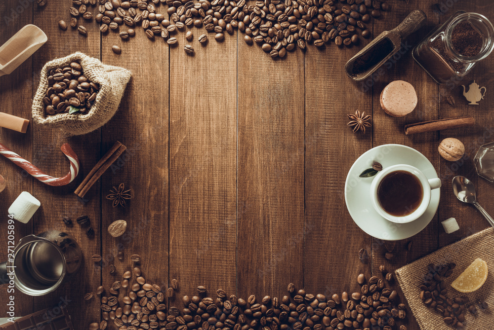 cup of coffee on wooden table