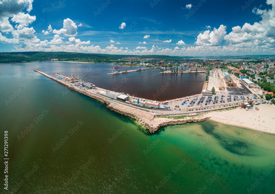 Aerial view of sea port and industrial harbor zone in Varna, Bulgaria