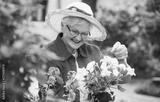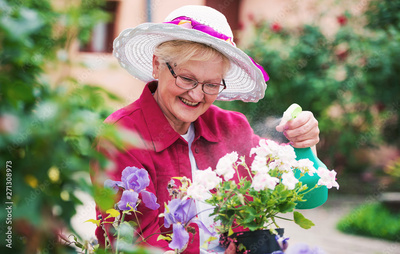 Senior woman working in her garden with a plants. Hobbies and leisure