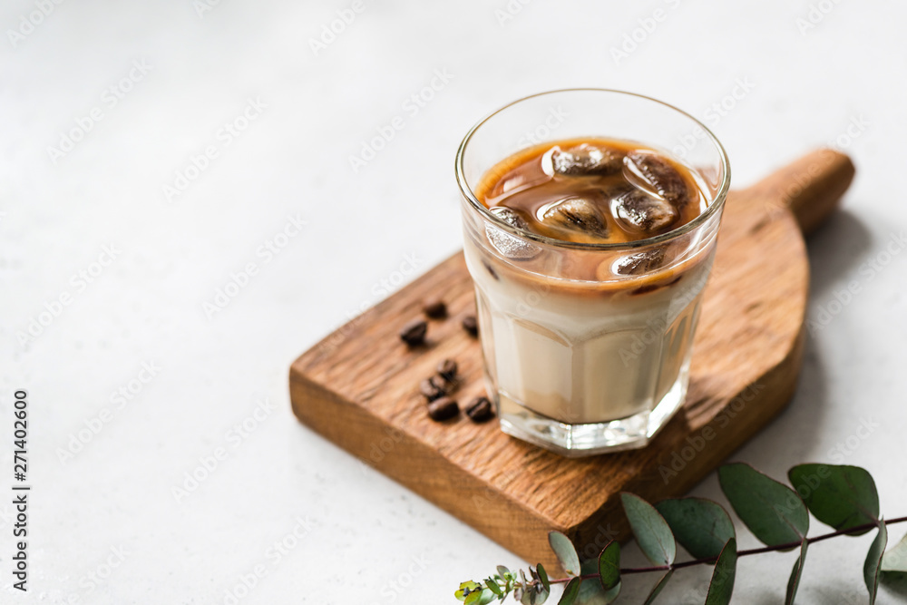Ice Cold Coffee In Glass, Refreshing Summer Drink. Copy Space For Text