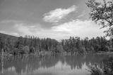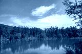 Blue pond (Aoiike) with reflection of tree in summer, located near Shirogane Onsen in Biei Town, Hokkaido, Japan
