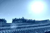 Mountain, Trees and Tulip flowers field with clear blue sky backgound in sunny day, a close up shot of colorful flower carpet.