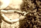A woman works in the garden on her own in the garden