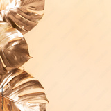 Golden tropical monstera leaf on nude background with copy space. Top view. Flat lay. Creative layout. Exotic summer concept in minimal style