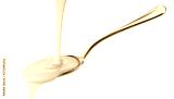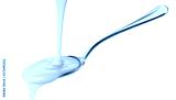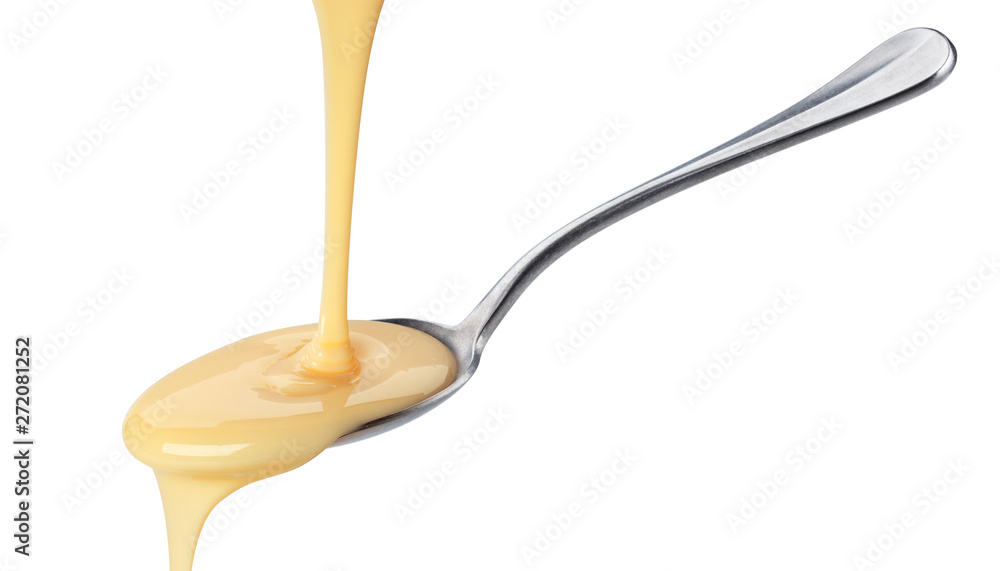 Pouring condensed milk isolated on white background