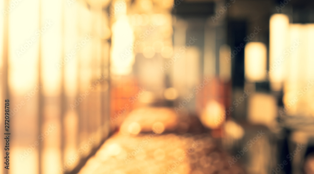 Blurred abstract light gold glass wall from building room