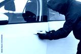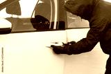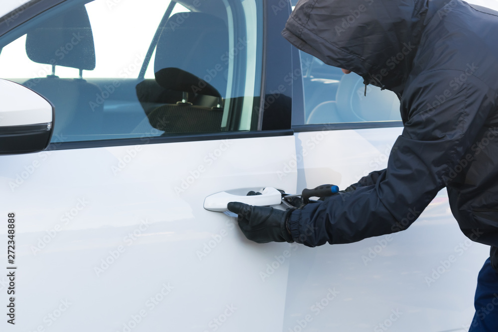 the thief broke the lock on the door of the white car and opened it