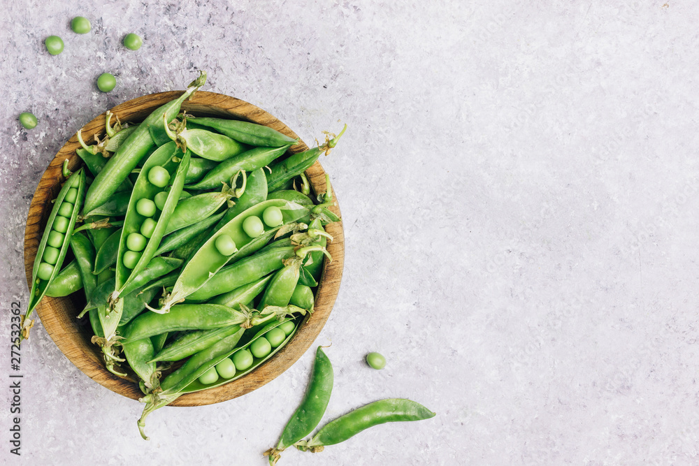 young green peas in bowl and Pods peas