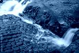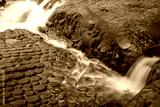 Lingas and sculptures of Hindu gods and waterfall at Kbal Spean the mystery place on Kulen mountain range in Siem Reap, Cambodia.
